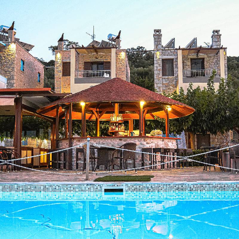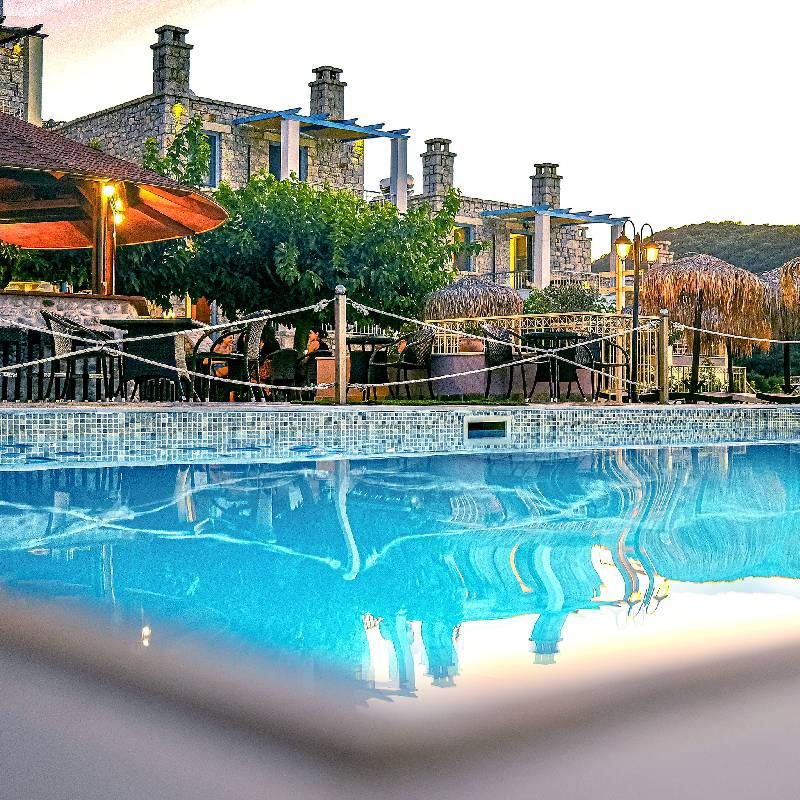Η πισίνα, με κομψή διακόσμηση και προσεγμένο περιβάλλον, αποτελεί βασικό σημείο συνάντησης των επισκεπτών. Με σταδιακά αυξανόμενο βάθος, είναι ιδανική για όλες τις ηλικίες, προσφέροντας στιγμές χαλάρωσης, κολύμπι και ηλιοθεραπεία όλη την ημέρα. Οι εγκαταστάσεις καθαρίζονται καθημερινά, διασφαλίζοντας υγιεινή και ασφάλεια για μικρούς και μεγάλους. Οι άνετες ξαπλώστρες και η μαγευτική θέα σε βουνό και θάλασσα δημιουργούν το ιδανικό σκηνικό για ξεκούραση και απόλαυση, από το πρωί έως το βράδυ.