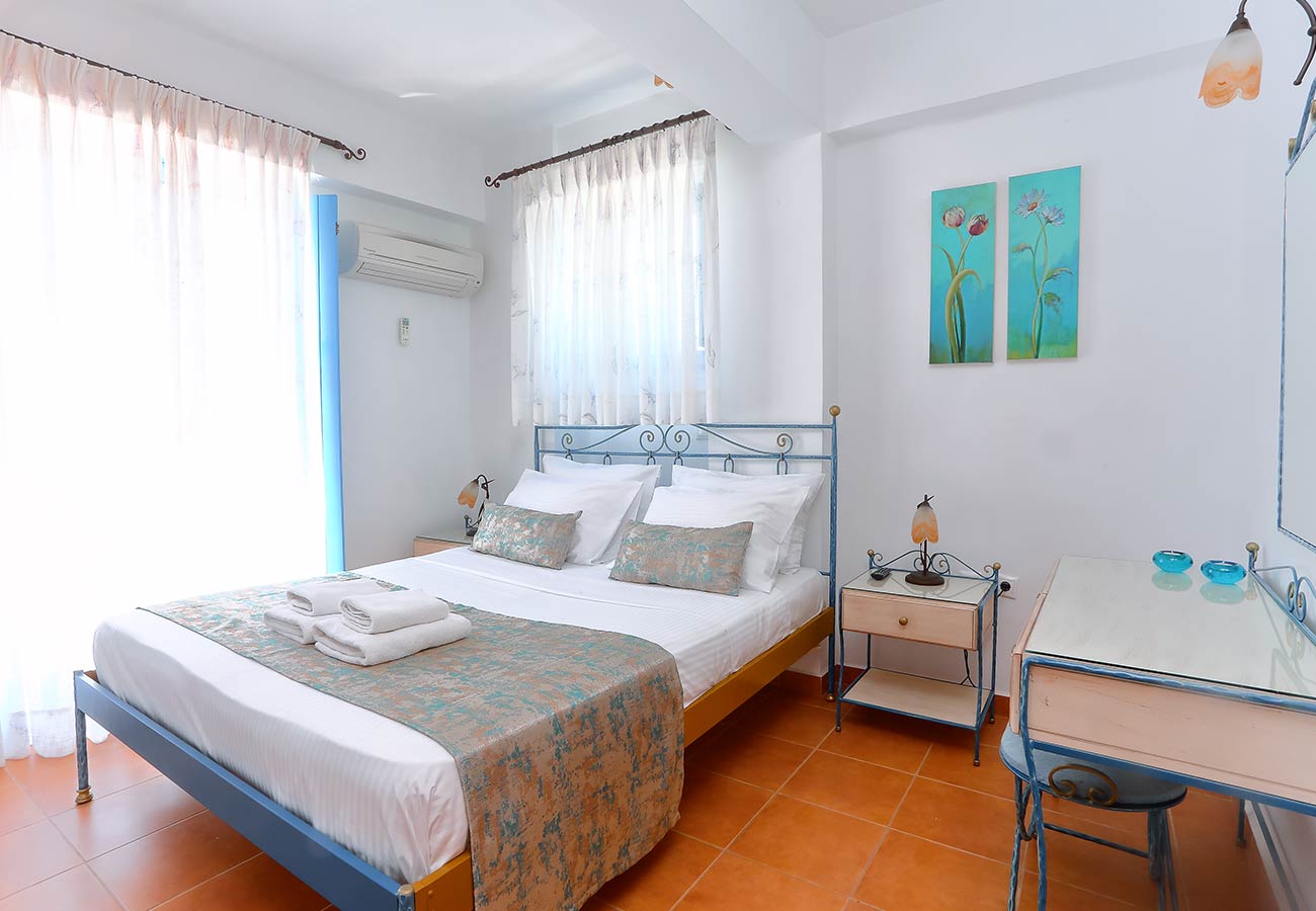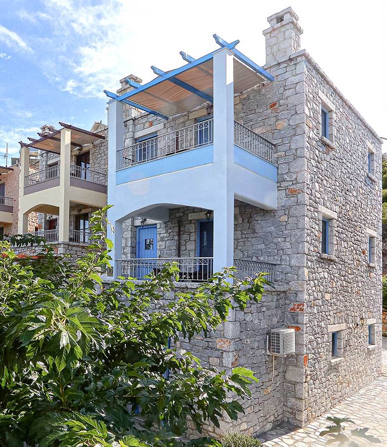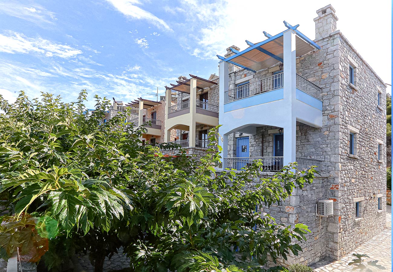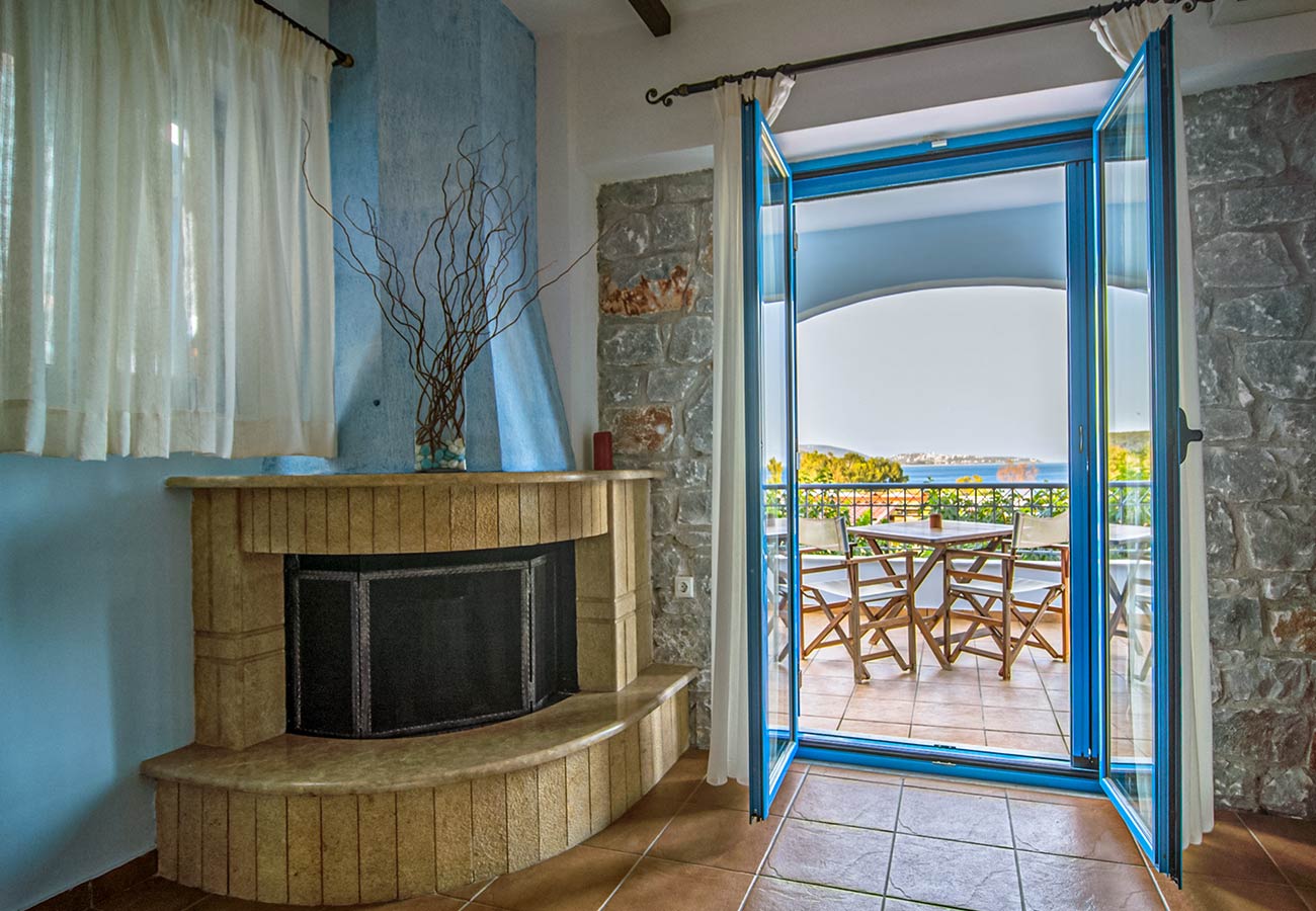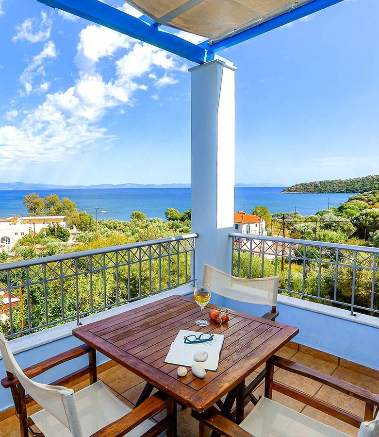 Τα διαμερίσματα είναι διαμπερή, με δύο ιδιωτικά μπαλκόνια και μαγευτική θέα, που συνδυάζουν τη μαγεία της φύσης και τη γαλήνη του υγρού στοιχείου, αφού το ένα έχει θέα προς το βουνό, ενώ το άλλο προς τη θάλασσα.