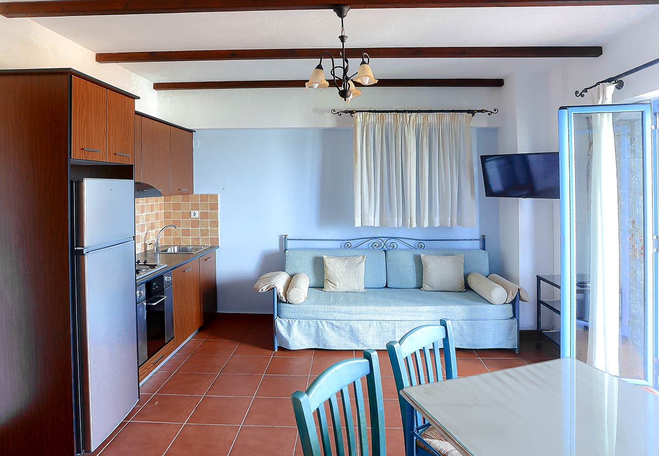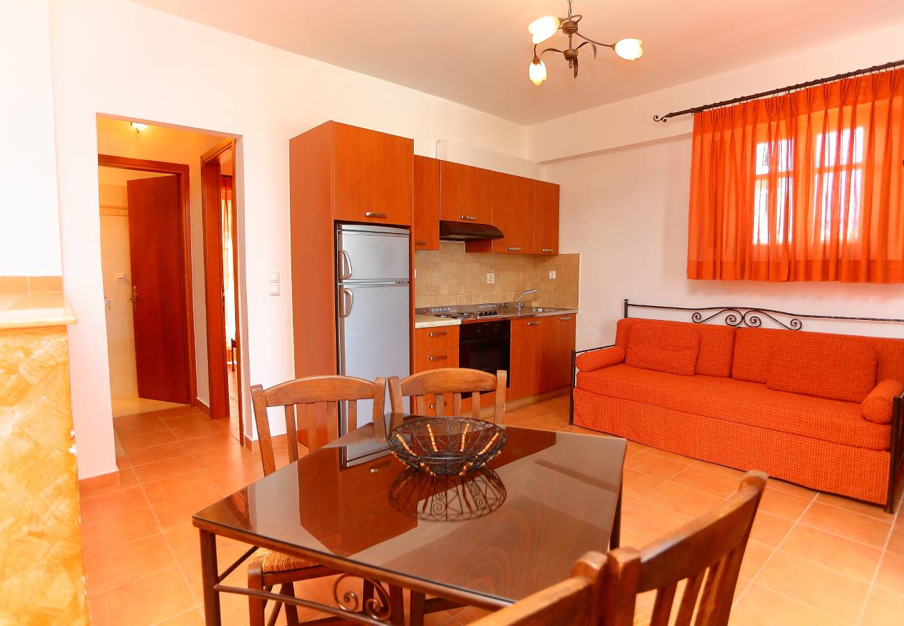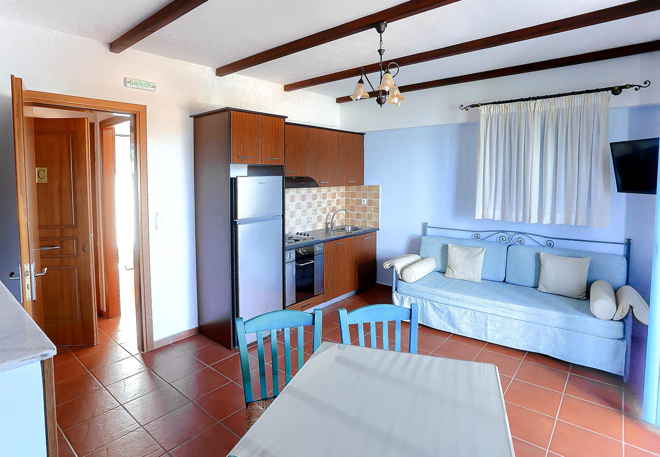 Τα ευρύχωρα διαμερίσματα ενός υπνοδωματίου, συνολικού εμβαδού 50 τ.μ., διαθέτουν ένα διπλό κρεβάτι και ένα άνετο καθιστικό με καναπέ, που μπορεί να μετατραπεί σε κρεβάτι, φιλοξενώντας επιπλέον άτομα.