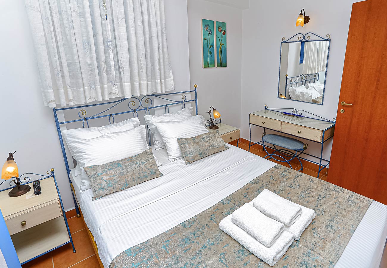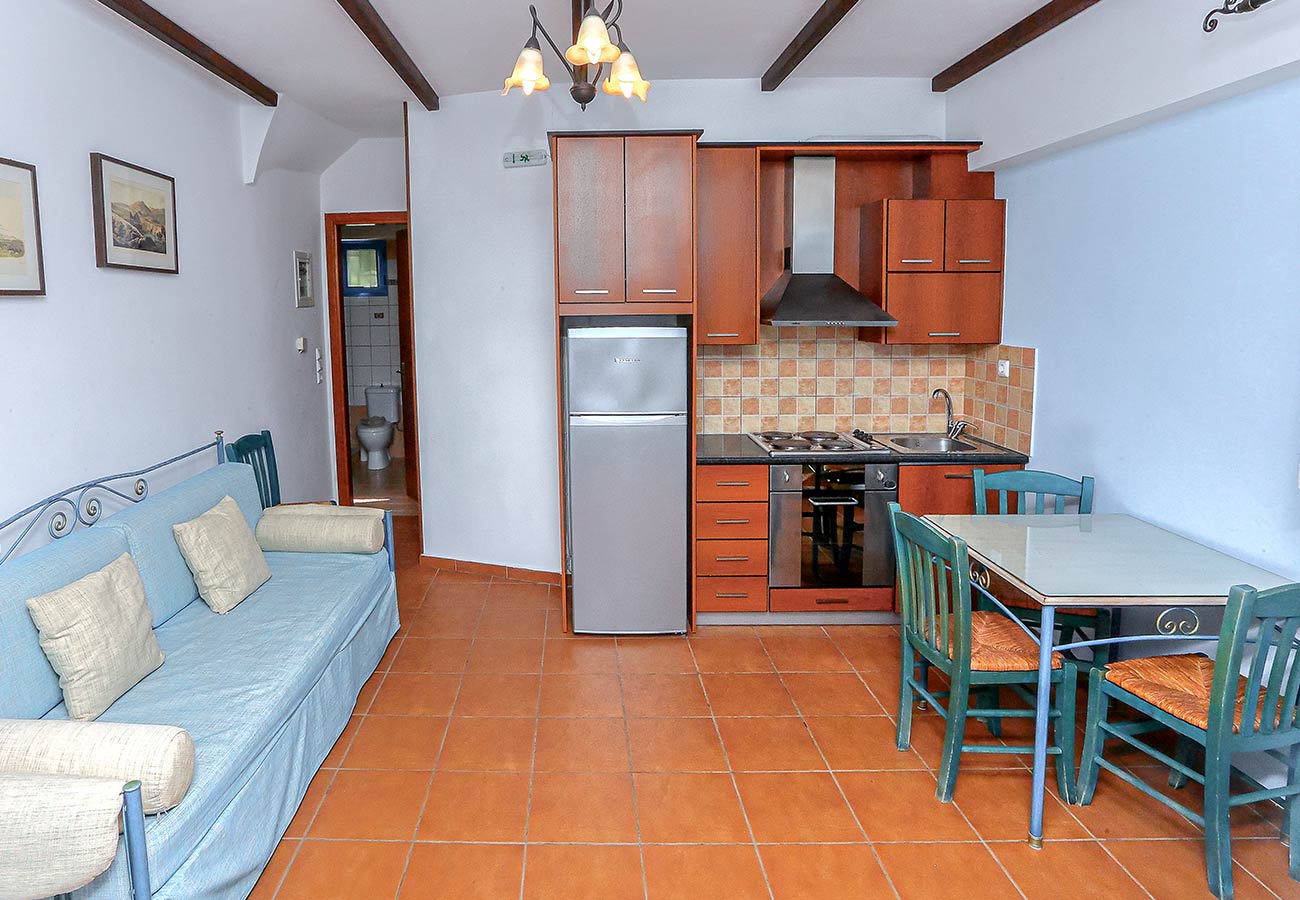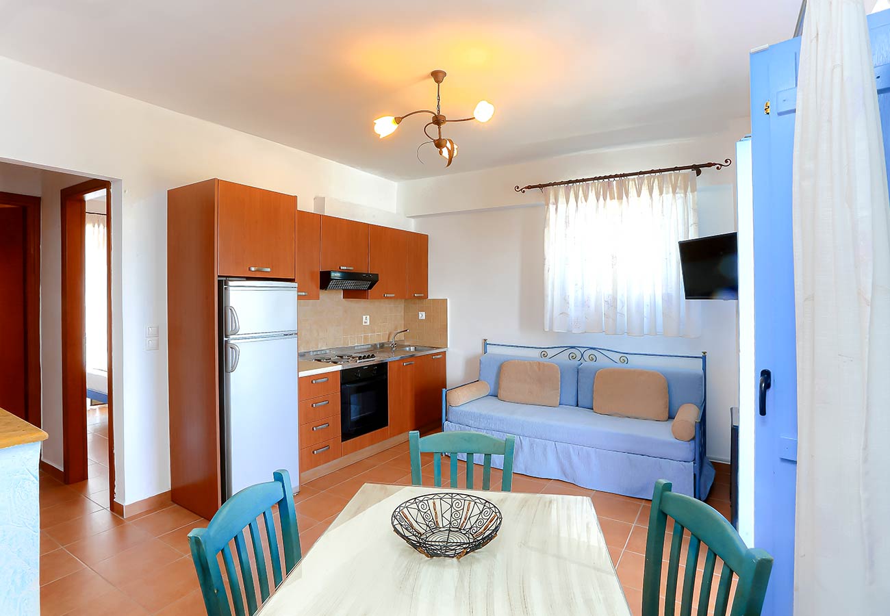 Τα ευρύχωρα διαμερίσματα ενός υπνοδωματίου, συνολικού εμβαδού 50 τ.μ., διαθέτουν ένα διπλό κρεβάτι και ένα άνετο καθιστικό με καναπέ, που μπορεί να μετατραπεί σε κρεβάτι, φιλοξενώντας επιπλέον άτομα.